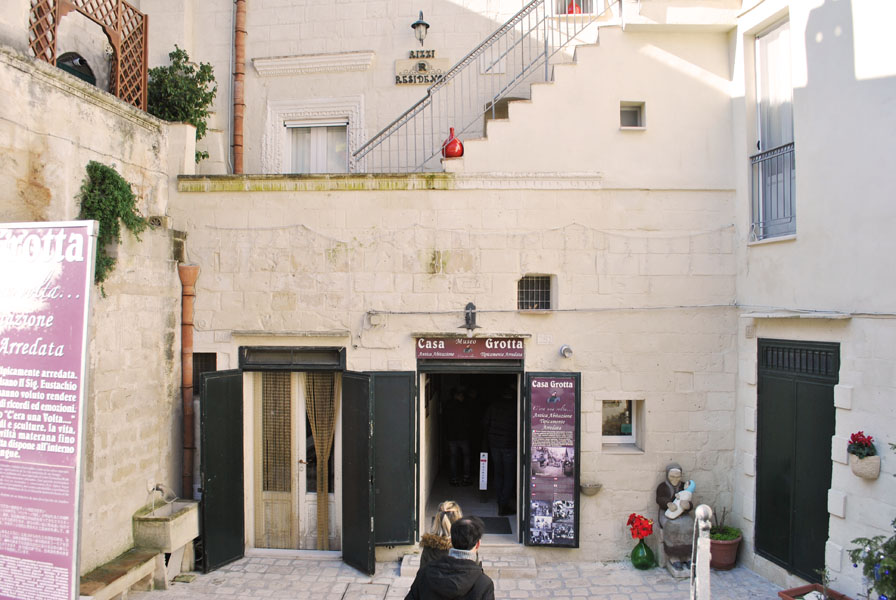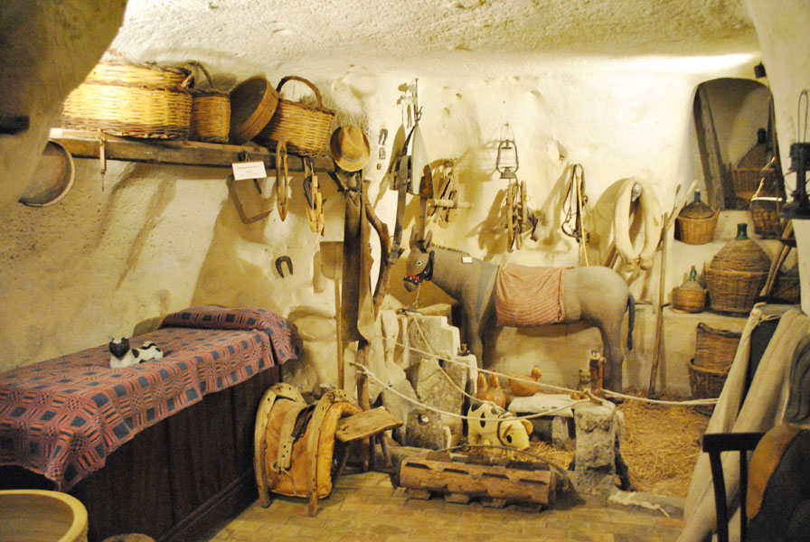 To see what a real peasant dwelling was like before the Sassi were abandoned, we visited several typical cave dwellings with old furniture and tools, like the Casa Grotta Antica Matera in the Sasso Barisano and the Casa Grotta di Vico Solitario in the Sasso Caveoso. These are typical dwellings partly man-made and partly excavated, whose formation can be dated back to the beginning of the 18th century.
