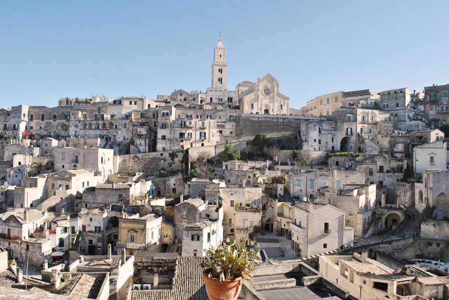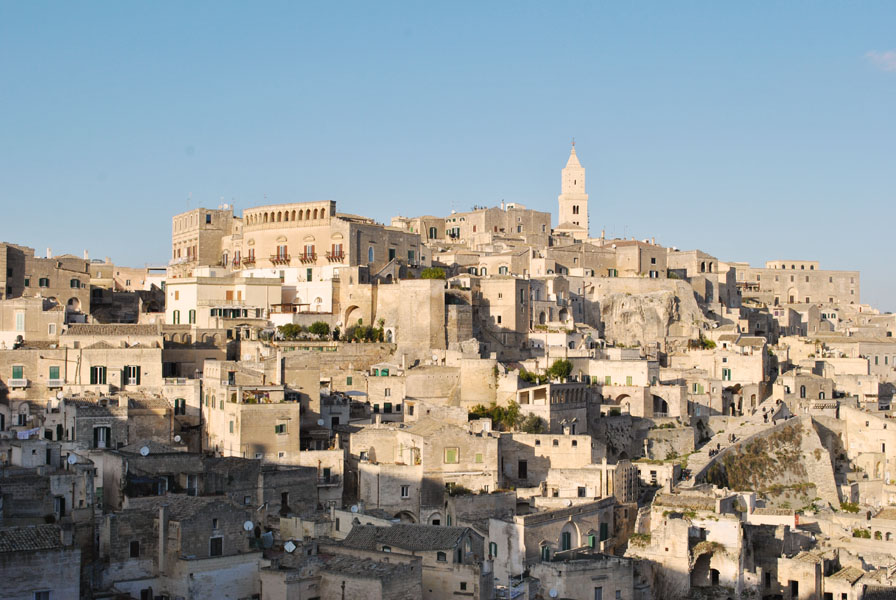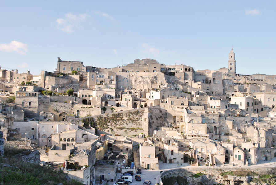 Matera is one of the oldest towns in the world. From the Neolithic age until today (around 7000 years) human activity has been taking place, without interruption, on the same site. These old quarters, known as the Sassi, are sprung out of a rocky area sitting on a great limestone gorge: the Gravina of Matera. They developed with a close relationship to the rock and consist of a mixture of caves and man-made dwellings.